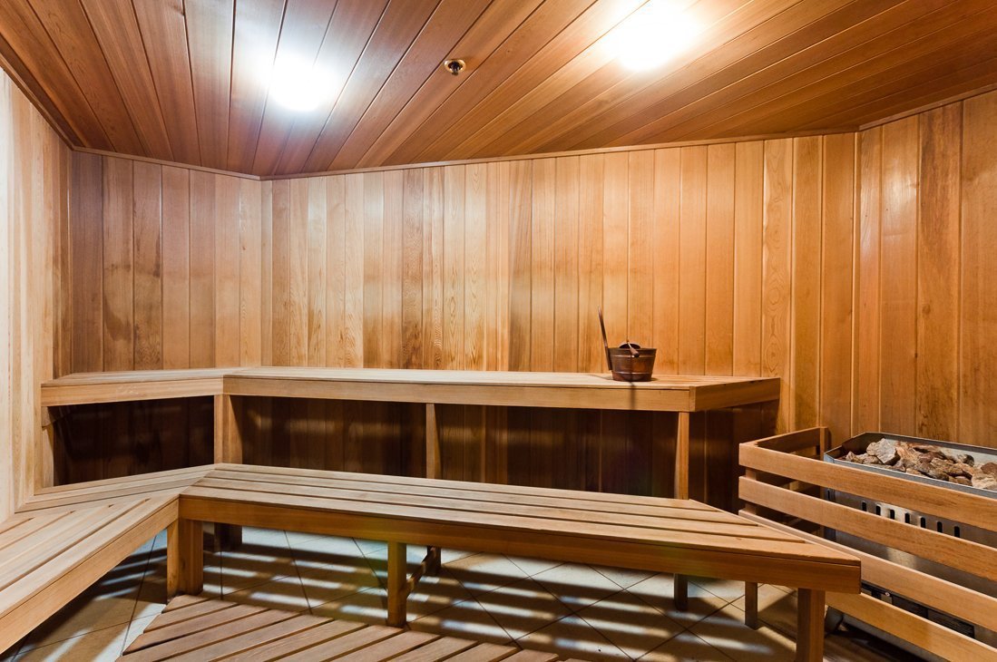 - spa area with saltwater pool, sauna, and jacuzzi